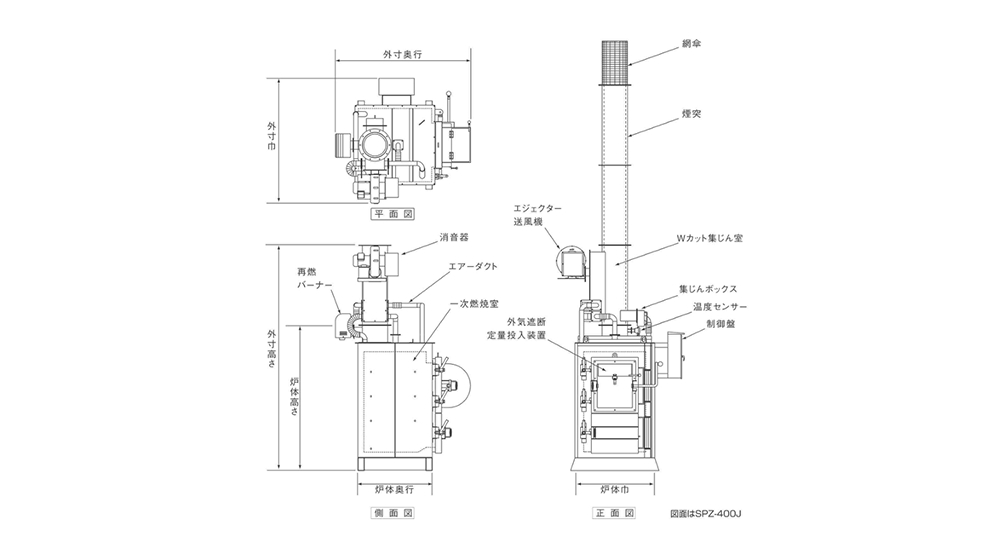 食肉として扱うことのできない(捕獲後時間が経過し過ぎた、病気を持っている等)個体に関して、残渣炭化装置にて炭化することができます。